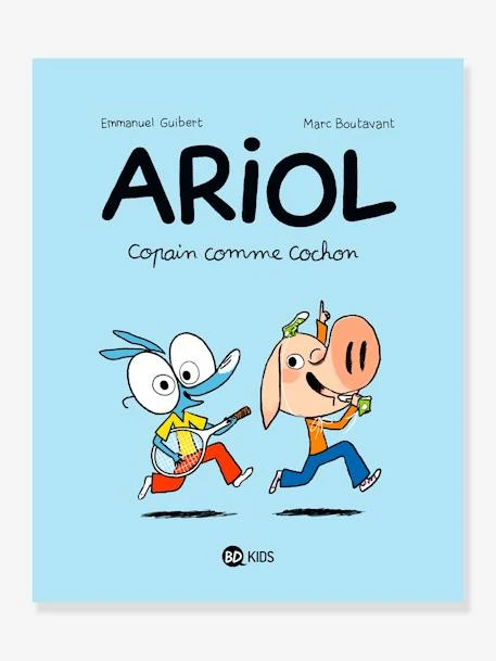 C’est facile : Ariol, c’est l’âne et Ramono, c’est le cochon.L’un est bleu avec des longues oreilles et des grosses lunettes. L’autre est rose avec le groin comme une prise Ă©lectrique. On ne peut pas dire qu’ils se ressemblent, mais ils sont copains. Tellement copains que parfois, le cochon fait des âneries et l’âne des cochonneries. Et lĂ , on ne sait plus qui est qui !