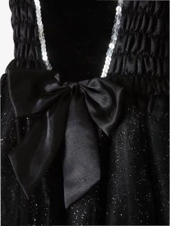 Pour les petites filles qui rêvent de donner la réplique à leurs acteurs préférés, voici un déguisement spécialement imaginé pour les étoiles montantes du cinéma ! Robe ornée de velours, sequins, satin et tulle, gants noirs et diadème, c’est parti pour la montée des marches et les séances d’autographes !