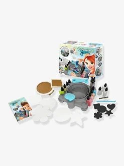 Un studio pour crĂ©er des Ĺ“uvres originales Ă partir de peinture et de paillettes ! Place une feuille dans le plateau et un flacon de peinture sur le bras. D’une main, appuie sur le bouton pour faire tourner le plateau. Avec l’autre main, dĂ©place le bras amovible et presse le flacon pour dĂ©poser la quantitĂ© de peinture souhaitĂ©e ! PossibilitĂ© de placer un tube de paillettes sur le bras pour dĂ©corer sa crĂ©ation. Le plateau est amovible pour un lavage facile ! Avec le crayon de cire et les gabarits, dĂ©limite des zones sur lesquelles la peinture n’ira pas. 3 flacons de peinture supplĂ©mentaires pour pouvoir rĂ©aliser ses propres mĂ©langes de couleurs ! Deux cadres sont fournis pour exposer les crĂ©ations.Â