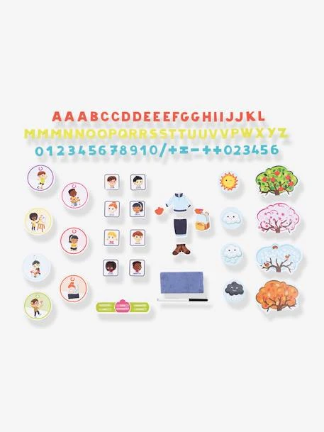- Inclus : 1 ardoise, 1 chiffonnette, 1 feutre effaçable, des chiffres et des lettres magnétiques